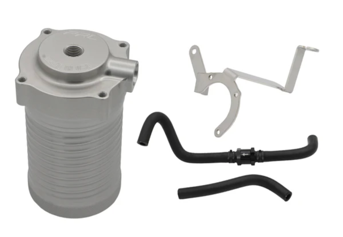 Modern turbocharged engines recirculate crankcase blowby gases back into the intake tract through the factory PCV system. While effective for emissions control, these gases also carry oil vapor, fuel, and moisture that can accumulate in the intake manifold over time. These contaminants contribute to carbon buildup on intake valves, reduce effective fuel octane, and increase the likelihood of detonation. The PRL Helix Air Oil Separator is designed to remove these contaminants before they are reintroduced into the intake system, helping maintain a cleaner intake path and more consistent engine operation without venting metered air or altering factory drivability.