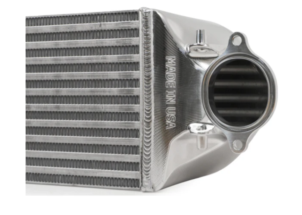 The tube and fin layout uses a series of thin oval tubes that run through the core with lightweight internal fins to increase surface contact with airflow. Because the walls of these tubes are thinner than those found in a bar and plate core, heat moves out of the charge air and into the surrounding air stream more quickly. This design allows the intercooler to shed heat at higher vehicle speeds with less thermal mass to overcome. The reduced weight improves responsiveness while the efficient tube structure supports strong heat transfer over extended sessions.