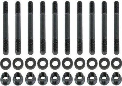 There are many important reasons to use ARP main stud kits, including the elimination of main cap walk and fretting, as well as protecting the threads in your engine block. All kits come complete with hardened parallel-ground washers and high quality nuts. Some applications have provisions for mounting windage trays and have specially designed standoff studs with serrated lock nuts to position the windage tray and lock it securely in place. The studs are manufactured from 8740 chrome moly steel, heat-treated in-house to 200,000 psi tensile strength, and precision J-form threads rolled after heat-treat to create a fastener that has threads 1000% stronger than others.
