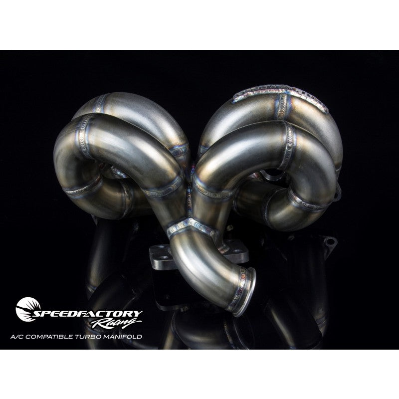 SpeedFactory Stainless Steel Turbo Manifold Ram Horn Style B Series T3 Flange w 38-40mm V-Band WG-AC Compatible SF-04-010
