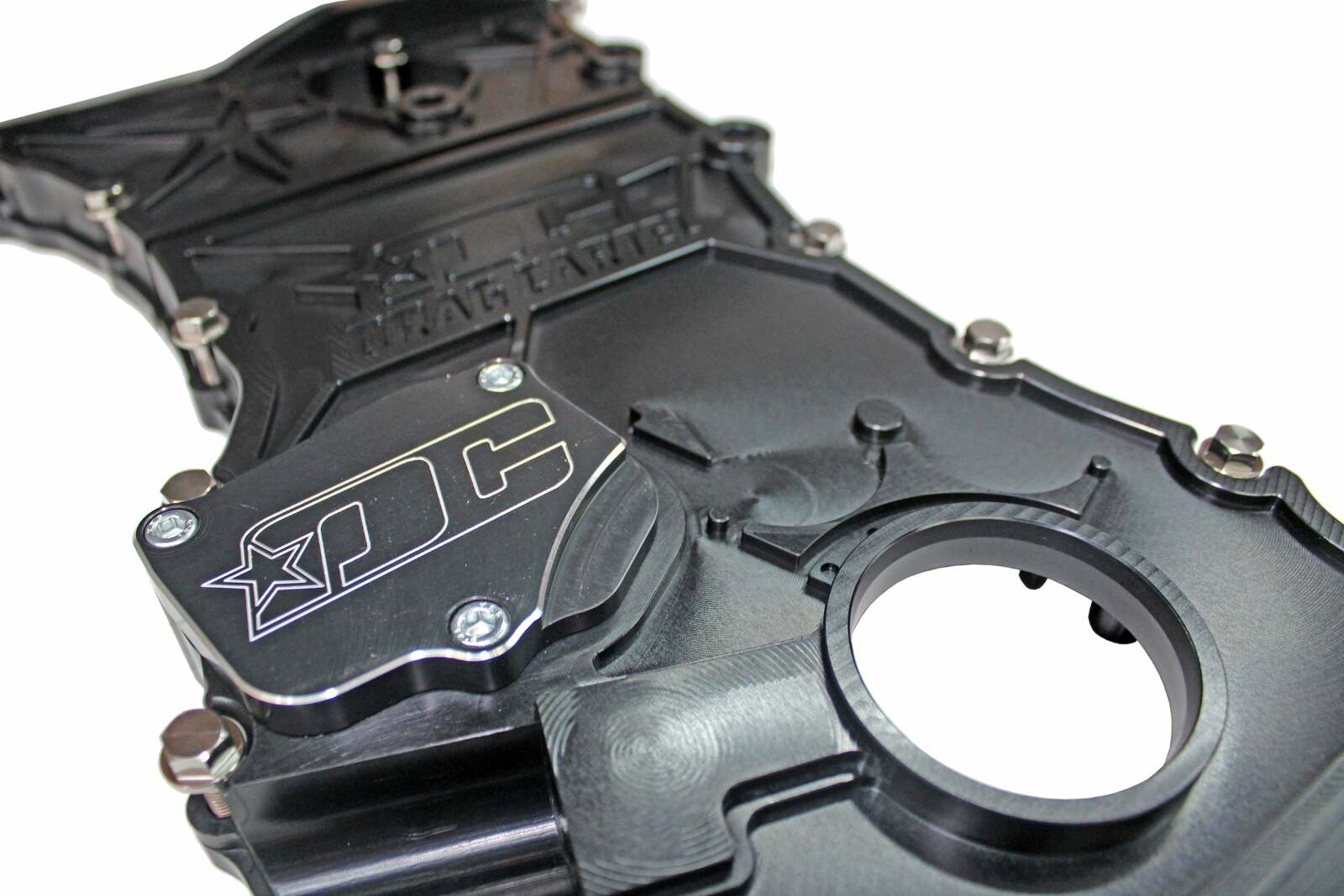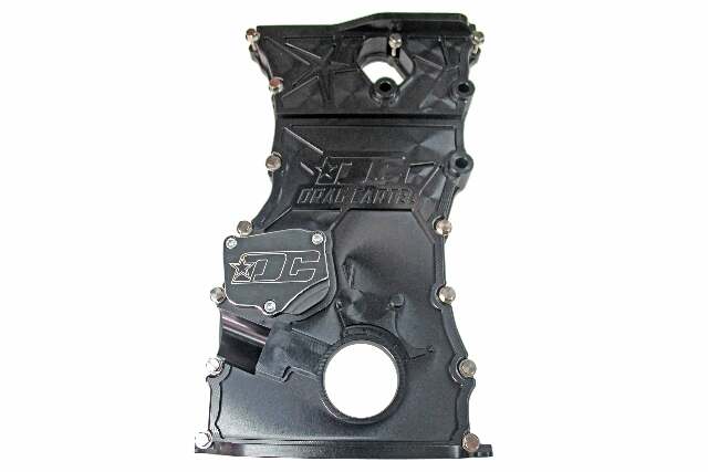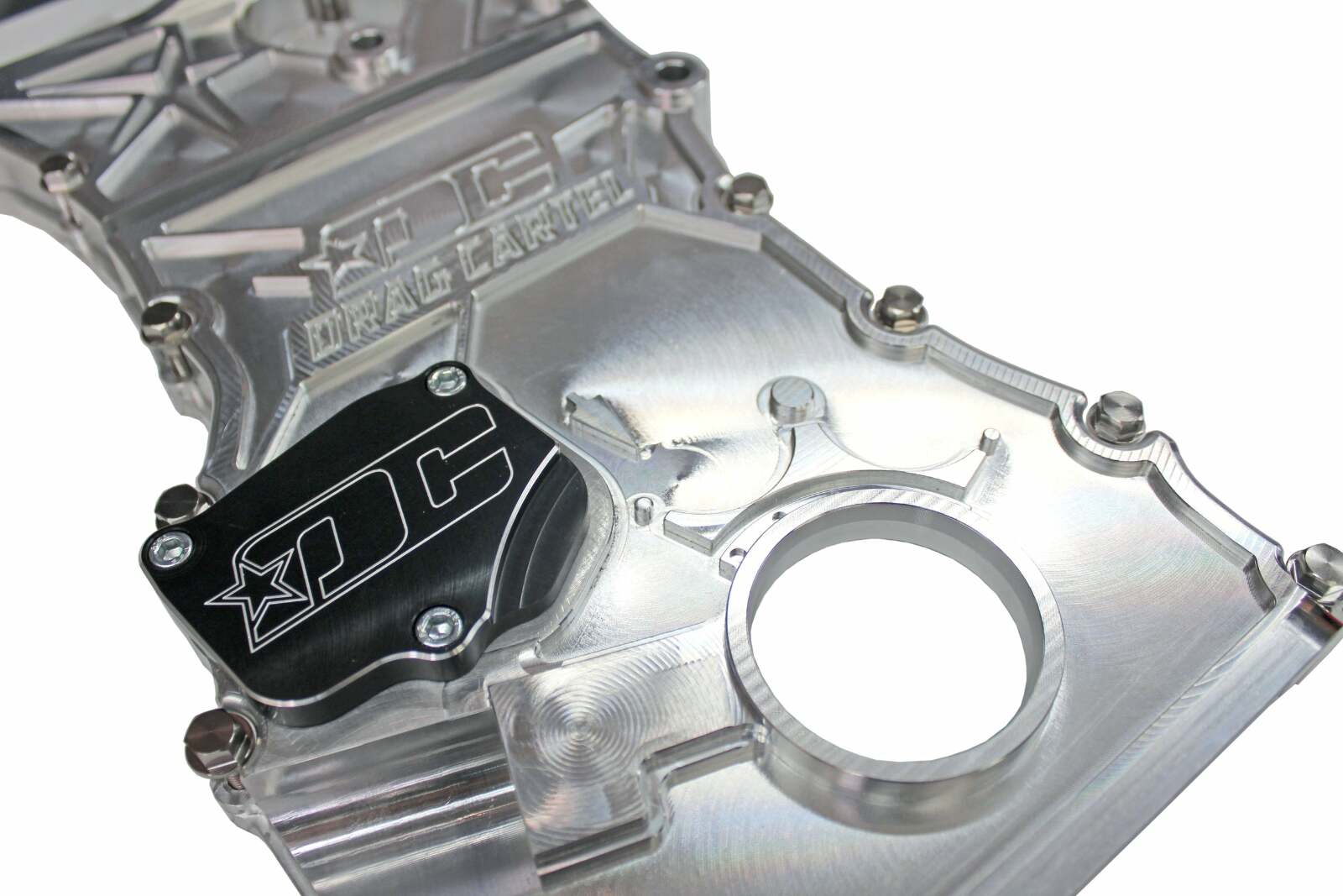 DC K-Series Timing Chain Covers are available for K20 and K24 applications in Machined Aluminum or Black-Anodized. Feature DC logo as a part of the design. Machined using high precision CNC equipment for an OEM fit and finish and an O-Ring Sealing Surface .