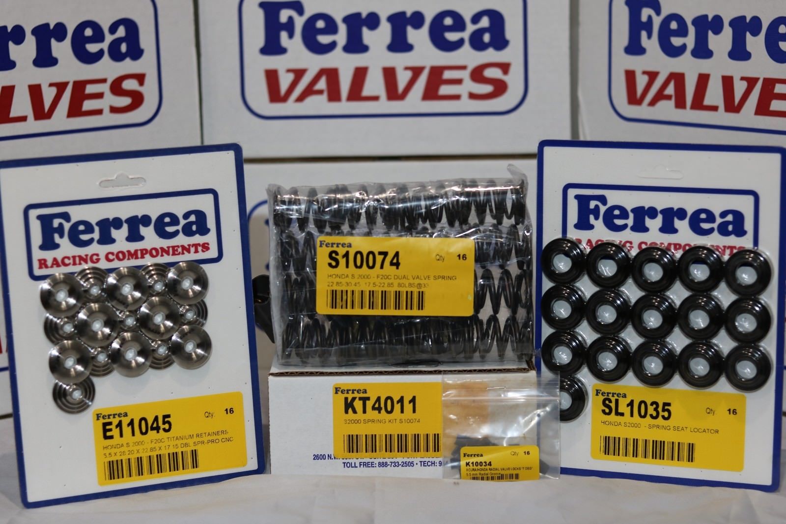 The new Ferrea Valve Springs are processed with premium-grade alloy and feature special thermal treatment. Ferrea's advanced spring design and material specs have uniform load and stress distribution even in the most extreme racing conditions. Great for high revving applications. These valvesprings and retainers will reliably allow your engine to rev high without the worry of part failure, valve float, or coil bind. Aftermarket valvesprings are made out of superior metal alloy's and optimized spring rates to make sure your valvetrain can keep up with your cams at high RPM. Whether you are rebuilding your engine, or building an all out race engine, replacing your valvetrain with Ferrea components will allow you to rev higher, and go more aggressive on your cams.