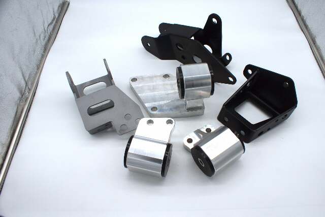 Engine mount kit for the K-Series (with TSX or Accord Transmission) into the 92-96 Prelude. Will fit with the US Accord K24A4, Element K24A4, TSX K24A2 and the Euro Accord K20A or K24A along with a US 03+ Accord, TSX or Euro Accord Transmission