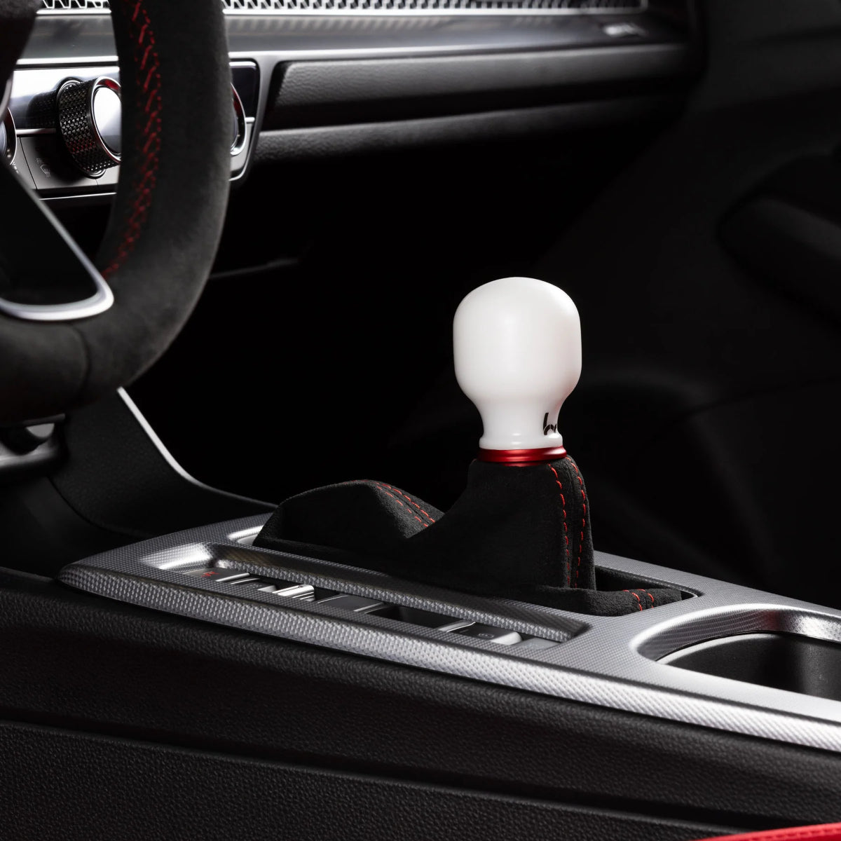 Enhance the look and feel of your interior by upgrading the shift boot. The Hybrid Racing shift boot is made from genuine Alcantara material, hand-cut, and constructed in the United Kingdom.