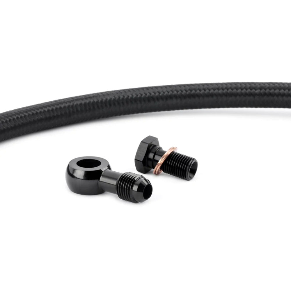 For EG/EK/DC Equipped with the Honda B-Series Engine Simple & Clean More durable than OEM line Requires aftermarket fuel rail Requires OEM Style fuel filter Braided nylon hose with 45? AN fittings Description Vehicle Fitment Install Guide This Hybrid Racing Fuel Line is designed for the 92-00 Honda Civic & 94-01 Integra using the B-Series engine and an aftermarket fuel rail. This kit replaces the OEM rubber lines with a -6AN braided line. You can attach this line to an aftermarket B-Series fuel rail with a -6AN adapter fitting. Once installed, the new line will route similar to the OEM fuel line. Unfortunately, stock fuel rails are not invited to the party as the OEM fuel rail lacks the proper ports for the new line. This kit is designed to work in conjunction with the Hybrid Racing Fuel Rail. If you order a Hybrid Racing Fuel Rail and this kit, you'll have everything you need to get your tucked fuel system setup. Simple. Clean. Tucked. COMPATIBLE WITH ALL FUELS Fits: 1992-2000 Honda Civic with B-Series Engine & Aftermarket Fuel Rail 1994-2001 Acura Integra with Aftermarket Fuel Rail 1993-1997 Honda Del Sol with B-Series Engine & Aftermarket Fuel Rail CLICK TO VIEW THE INSTALL GUIDE