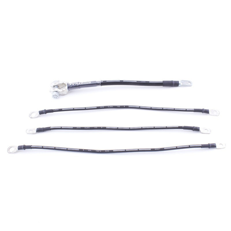 Good ground connections are arguably the most important part of any electrical system. Without them, there's no way for current to flow through an electrical system. Being certain that your electrical system is properly grounded is critical when it's time to troubleshoot problems with any fuel injected car. Obviously, this is even more important in the case of an engine-swapped vehicle, where any number of electrical issues could arise. Hybrid Racing's K Swap Ground Kit is a cost-effective way to be sure that you will not run into any problems that may be caused by improperly grounded components. Crimped connections on grounds is a recipe for many wiring headaches. Crimped grounds can be pulled apart easily and often will simply fall apart when exposed to the vibrations created by the engine. All of the ends on the Hybrid Racing K Swap Ground Kit have been soldered to the cable. This means that the ends will not come loose from the cable under vibrations or even when the cable experiences large amounts of tension (although this situation is unlikely).