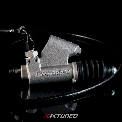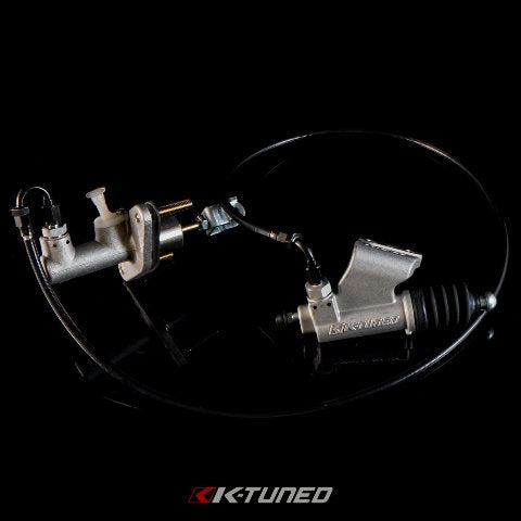 The K-Tuned Clutch Master Cylinder Upgrade Kit was designed to completely replace the original factory cylinder and offer real time clutch engagement to support faster shifting. We have put together a complete bolt-on kit that includes a direct replacement CMC, our high pressure 3AN clutch line, plus all of the necessary fittings needed for installation. The factory clutch fluid reservoir is reused and connected the same way it was in stock form. The only thing we suggest is checking out your slave cylinder on the trans to confirm it is leak free. Aside from that, installation is pretty simple, install the parts and bleed the system using some new clutch fluid.