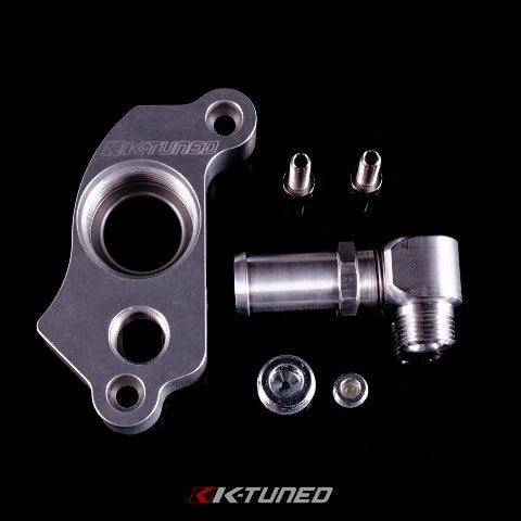 The K-Tuned Upper Coolant Housing will compliment our Swivel Neck Thermostat and our Water Pump Block off Plate. All of these parts allow plenty of options for custom and race engine cooling setups.