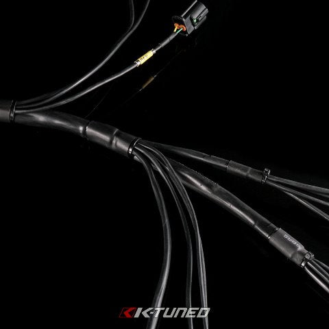 The K-Tuned Tucked Engine Harness is designed as a high quality replacement 02-04 RSX Type-S harness that offers a super clean look. We have made the harness with lots of features so it will work with nearly all K-Series engine swaps and the 02-04 RSX Type S. It includes all the necessary plugs with a handful of extras (Fan Switch, IACV, Temp Sensor, ETC). We used only SAE certified automotive grade wiring resistant to moisture and most solvents to ensure quality and durability. High quality military grade heat shrink loom is used to cover entire harness which is resistant to gas and diesel. It is rated for -55? C to 150? C (-67? F to 320? F). We have also used a popular and clean tucked wire layout. The main harness runs over the valve cover and even hides the injector plugs, which come up from under the manifold. RSX injector plugs come with all harnesses. The pins on RSX injector plugs can be fitted into the oem RDX plugs which makes switching quick and simple. We have incorporated the charge harness and alternator power wire into the harness. We used a thin, but high grade power wire to help keep the overall size down. On swap chassis, the power wire will work with fuse box in factory location or relocated under the dash. Separate power wire is available for other chassis and those that prefer to run their own charge wiring. Everything is labeled clearly to ensure a simple installation and no confusion.