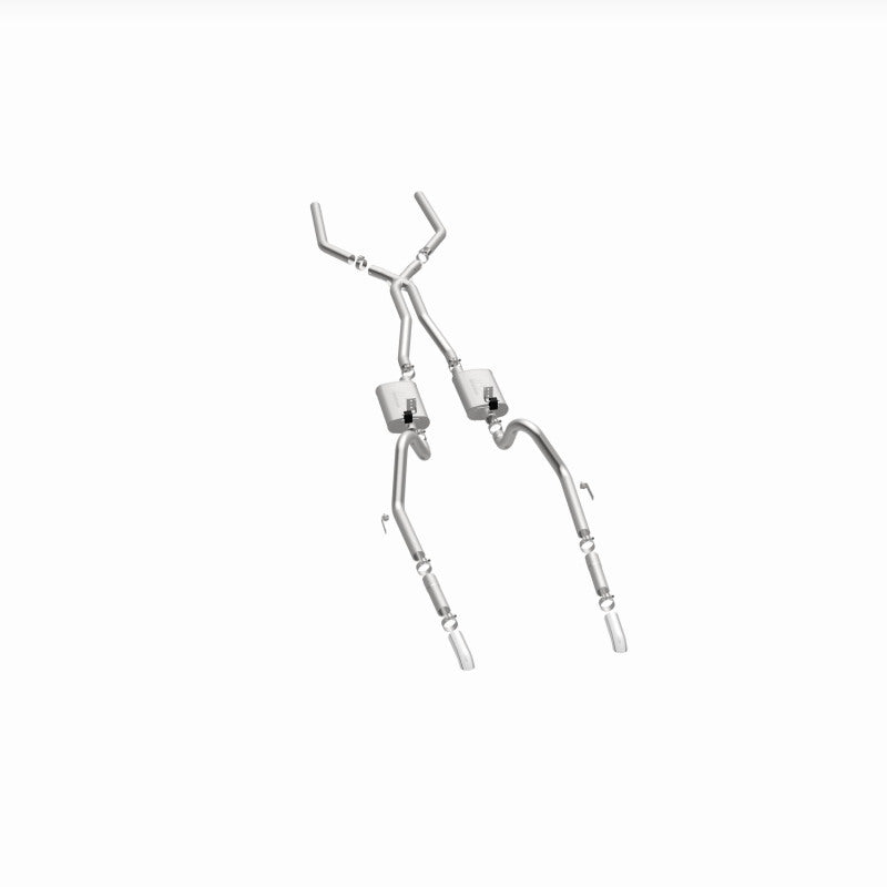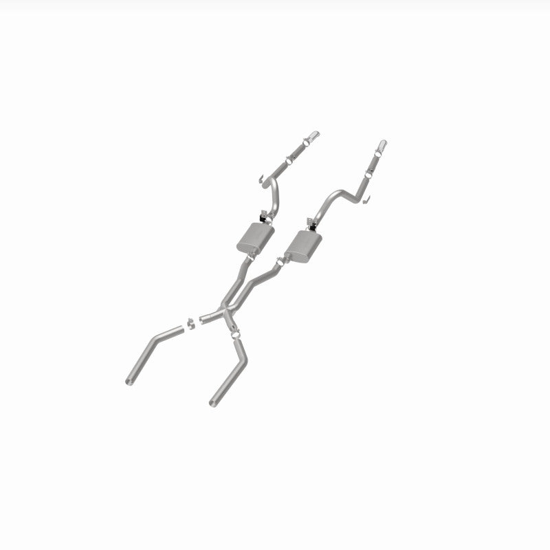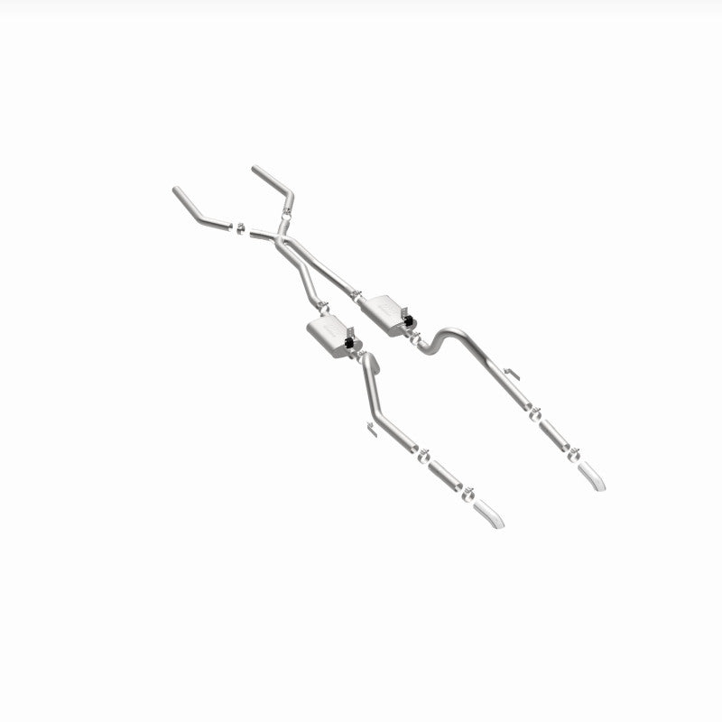 The MagnaFlow 1964-1966 Ford Mustang Street Series Crossmember-Back Performance Exhaust System 15815 brings enhanced engine sound and dyno-proven performance to your 2.8L, 3.3L, 4.3L, 4.7L 1964-1966 Ford Mustang with a healthy helping of our deep, resonant signature exhaust note at Moderate exterior and Mild interior sound levels. Thanks to its durable, corrosion resistant stainless steel design, this Ford Mustang exhaust system will handle whatever tarmac you decide to leave your mark on. This performance exhaust kit features a crossmember-back layout designed to replace your Ford Mustang's exhaust system from the crossmember on back. With its fast-flowing, mandrel bent 2.5in. main piping and 2 Straight-Through mufflers ending in a Dual Split Rear exit with 2.75in. Polished Welded-On Single Wall Turndown Cut Edge tips, your muscle car will be sounding as awesome as it looks. Extensive 3D scanning during development has resulted in a direct-fit design that you can easily install yourself. 15815 is produced using CNC precision robotic manufacturing techniques and is backed by MagnaFlow's limited lifetime construction warranty.This Part Fits: