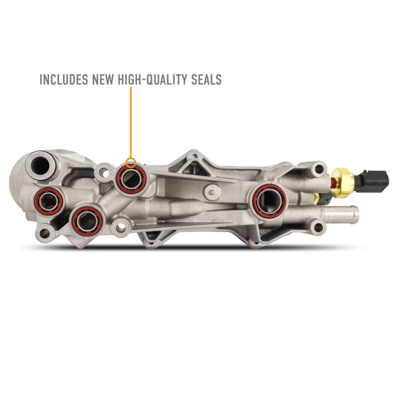 but they're not without their flaws.----The stock 3.6 oil filter housing is made from plastic and is known to become brittle after repeated heat cycles. When that happens, even the slightest amount of torque on the filter cap while performing an oil change can be enough to crack the housing and cause significant oil leaks. To make matters worse, the oil filter housing lives underneath the intake manifold, making it difficult to identify and diagnose the leak. Oil running down the back of the engine can look like a failed rear-main seal and end up costing you thousands in parts and labor, only to have the problem continue. Luckily, Mishimoto offers a solution to prevent the headache of chasing down oil leaks and give you peace of mind.----Our all-aluminum 3.6/3.2L Pentastar oil filter housing kit is a complete safeguard against frustrating oil leaks. As the name suggests, our oil filter housing swaps the stock brittle plastic for a robust aluminum replacement. This housing is significantly stronger than the stock polymer version and won't become brittle over time. We've also upgraded the seals to Viton for improved oil and fuel resistance, ensuring a long service life. This complete kit includes the aluminum housing, oil filter, filter cap, intake manifold gaskets, filter housing seals, heat exchanger, oil temp and pressure sensors, and bolts, making it a one-stop solution for your Pentastar. Like all Mishimoto products, this 3.6L/3.2L Pentastar aluminum oil filter housing kit is backed by our Mishimoto Lifetime Warranty, for a lifetime of leak-free reliability.This Part Fits: