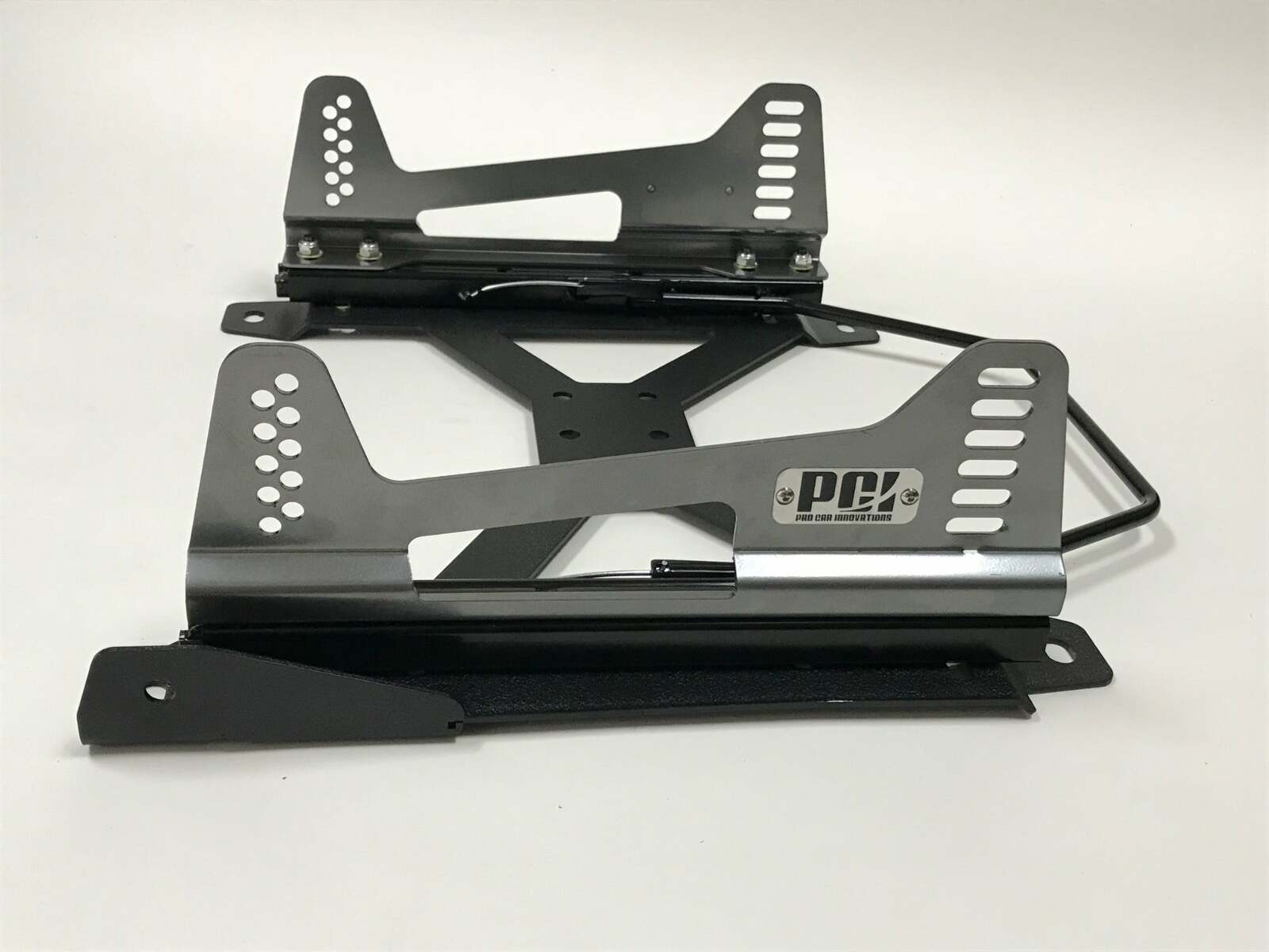 Wondering how to mount that new race seat? Pro Car Innovations Racing Spec Seat Mounts takes the guessing game out of this install. Finding the correct seat brackets can be almost impossible where most end up with a self-fabricated mount. The PCI S1 sliders are one of the strongest sliders available. Each slider bolts to the base with 4 bolts making them twice as strong as 2 bolt mounting. PCI has invested the research in order to create an ingeniously crafted safe design that?s easily adjustable to accommodate multiple applications. Our Slider Seat Mounts are designed to bolt directly to the factory seat mount locations and simplify that new race seat install.