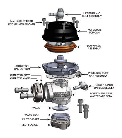 - A 347 stainless investment cast valve body to provide consistent performance without fatigue or failure while also allowing for accurate boost control