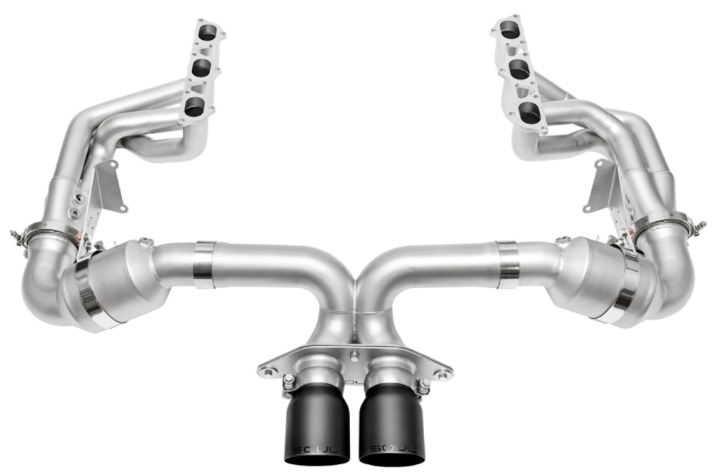 SOUL 2022 Porsche 992 GT3 Catted Exhaust System - 4in Straight Cut Satin Black Tips