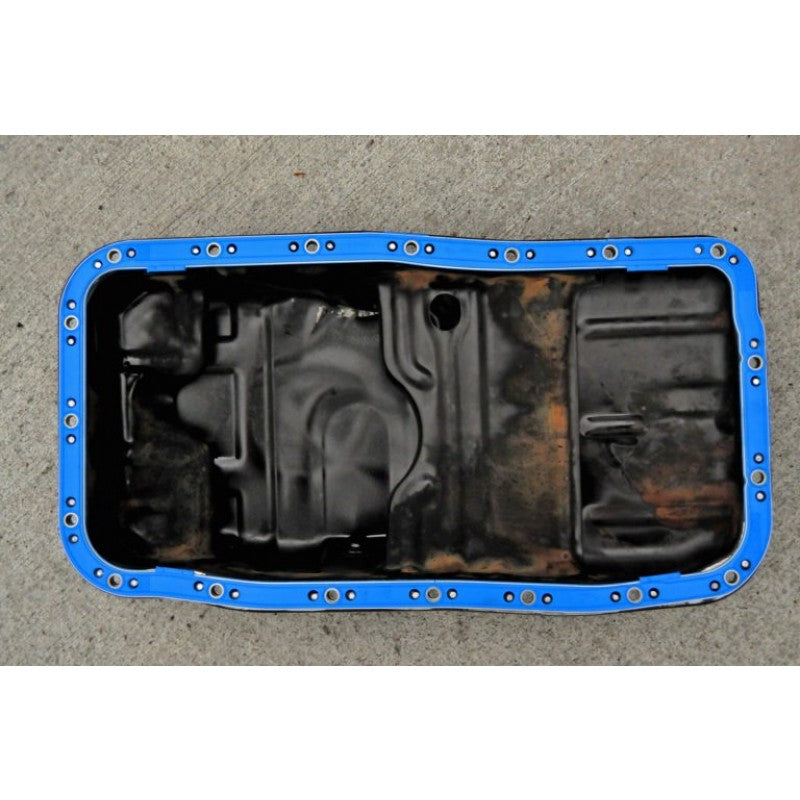 At this point, the OE-style oil pan gasket design will no longer work, because it relies on the correct formed dimples to prevent over compression of the gasket. In this case, there are two options – replace the pan at over $100, or install the new Fel-Pro PermaDryPlus oil pan gasket – OS 30630 T.