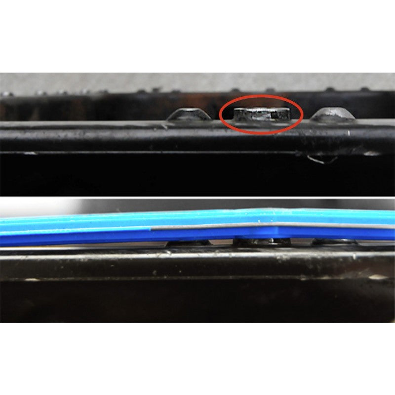 FYI – Installation TipThe OE gasket does have two compression limiters molded into it – they can be found only on the transmission side of the pan. When removing the old gasket, these limiters can be left behind, stuck to the pan. If these limiters are left in place, the limiters built into the Fel-Pro gasket will stack on top of them and result in an oil leak.