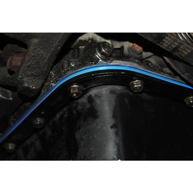 Like every Fel-Pro PermaDryPlus gasket, the OS 30630 T must be installed on clean and dry sealing surfaces, with no sealers, adhesives, or RTV applied to the gasket. The repair manual replacement procedure instructions should be followed for this gasket, as with all Fel-Pro gaskets unless otherwise noted. As directed by the repair manual for these applications, there are 4 areas on the engine block where RTV must be applied – the two joints created by the oil pump and the two joints created by the right side cover. RTV is needed at these points because the components coming together creates a joint which no gasket can “flow” into. A little bit of RTV will get on the gasket when the gasket and pan are placed on the block, which is ok as long as RTV is not applied anywhere else.