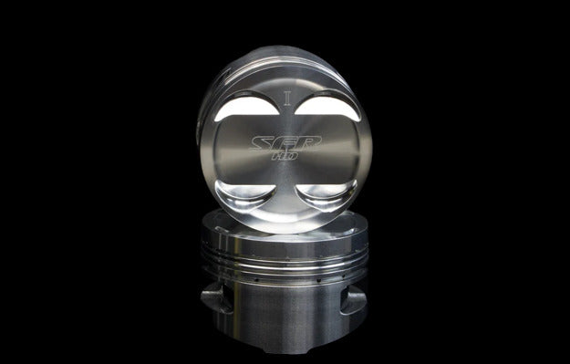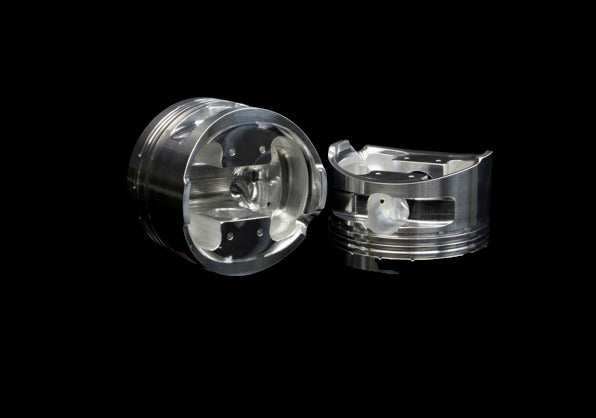 This is NOT just another piston labeled ?Outlaw? with a couple of upgraded features. These were actually developed in our B-Series Outlaw car and proven at 90+psi of boost + nitrous = 2000+hp and 215+mph in the 1/4 mile. Available for B-Series applications in 84mm, 84.5mm, and 85mm Bore sizes with 21mm & 22mm wrist pin size only *** BEFORE ORDERING PLEASE CONTACT US FOR CURRENT STOCK LEVELS *** More power = more heat. These pistons will cope with that better than anything else available. They aren?t meant to be the flashiest, lightest, or trickest looking pistons ? they are designed to be reliable at insane power levels. Period. Years of pushing the absolute limits of these engines and our partnership with Bill Miller Engineering providing expert failure analysis and consulting throughout has led to this piston design which we are now making available to the public. These are designed for max-effort turbocharged race engines making 1300+whp with an appropriate ~9.5:1 compression ratio for reliability. RACERS & TUNERS - PLEASE READ!!! Many racers are currently encountering engine reliability issues with today?s ever increasing power levels as turbocharger technology and output per turbo size continually increases at a rapid pace. If you are continually hurting engines (pushing headgaskets, bending aluminum rods, distorting pistons, etc) despite pulling ignition timing out and running a richer AFR, you have too much compression for the fuel and boost levels you are running.PERIOD. You are experiencing auto-ignition and you need to lower your compression ratio. This will allow you to regain reliability in your program by maintaining control over your ignition event and avoid auto-ignition issues. Stop blaming the strength of your parts for the engine damage you are continually experiencing and address the real source of the issue. Run an appropriate compression ratio for your boost levels! FEATURES: High strength 2618-T61 aluminum forgings Superior ring groove finish & runout, less than 0.0002? around the entire piston Lateral Gas Ports - improved ring seal Anti-Detonation Groove Full Round skirt rib maintains piston roundness, superior to piston skirt struts used in other ?Outlaw? piston designs Ultra Low ring pack position - protects the rings from heat Oil Squirter Notch ? allows additional piston cooling via oil squirters Pin Fit ? precision honed for exact clearance Hand Finished & Deburred CNC Head Mill, Window Mill, & Spin Boss ? to reduce weight Heavy Duty 1.5 x 1.5 x 3.0 Ring Pack ? handles more heat Custom Pin Button Set Double Bottom Splash Oilers ? suits high rpm & severe duty applications 22mm Heavy Duty .225? Wall 9310 Tool Steel Wrist Pins to handle extreme loads -8.0cc dish volume, 1.180? CH (approx. 9.5:1 CR in typical LS/VTEC combos)