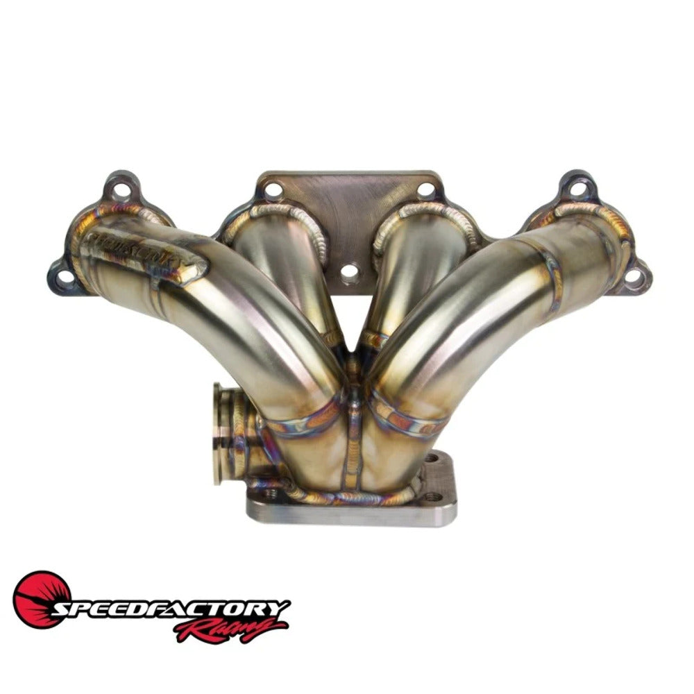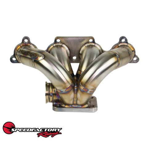 The SpeedFactory Mini-Ram is a proven, cost-effective Honda / Acura B and D-Series turbo manifold that will spool your turbocharger very quickly and produce broad powerbands. Our Mini-Ram is constructed from high quality 1.5? Schedule 40 stainless steel, and is TIG-Welded and back purged to ensure that you are receiving the highest quality product possible. Our cylinder head, wastegate, and turbine inlet flanges are CNC machined from ?? plate 1018 Steel and all mating surfaces are machined flat ensuring a perfect seal.