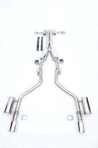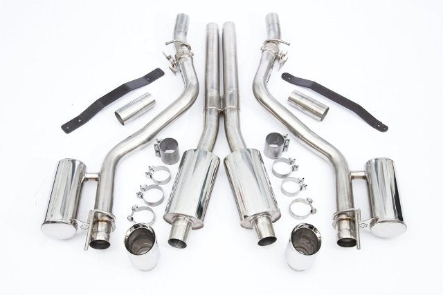 The final result: The option for Valve bypass for straight through performance, making the OEM Active Exhaust System inactive, a 3? diameter system, and sound control utilizing our top of the line engineering process. Dual drone canceling chambers and a resonated mid pipe with balance mixing chambers allow for drone canceling when cruising, but keep the aggressive deep, throaty notes on acceleration.